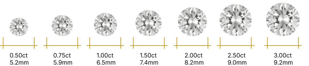 Carat weight measures how much a diamond weighs, not how large it appears. One carat equals 200 milligrams. As carat weight increases, the price often rises significantly because larger diamonds are rarer and require more resources to create. However, visual size can vary — two diamonds of the same carat weight may look different depending on their cut quality.