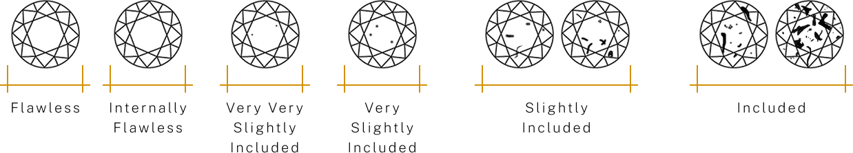 Clarity describes the natural marks within a diamond. These include internal inclusions and surface blemishes formed during the stone’s growth. Clarity is graded from Flawless (FL) to Included (I), with common grades such as IF, VVS, VS, and SI indicating the size and visibility of these features. Most inclusions are not visible to the naked eye, meaning a diamond can appear perfectly clean in everyday wear.