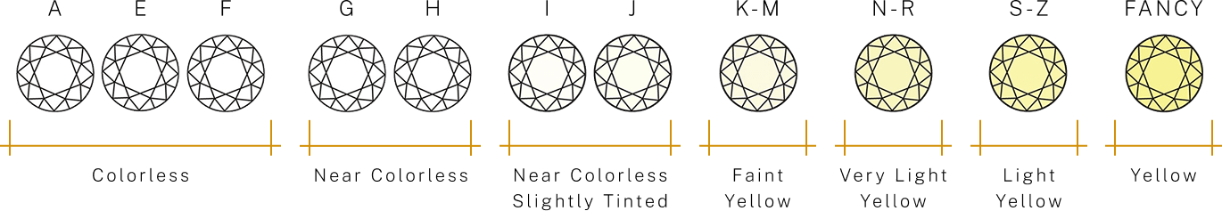 Color measures how white or colorless a diamond appears. Most diamonds look white, but some may carry subtle yellow or brown undertones. The color scale ranges from D to Z, where D is completely colorless and Z shows visible tint. Diamonds graded D to F are considered colorless, while G to J are near colorless and still appear fairly white in most jewellery settings.